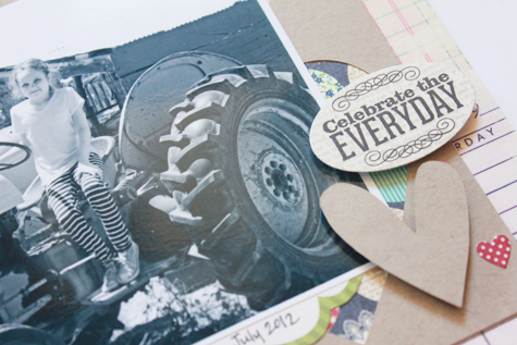 Grandma Rasmussen lives in a nice big house that backs up to farmer's fields where sheep are very commonly found roaming. We got to visit the sheep who quickly ran away as we approached. After seeing the sheep we thought it would be fun to take pictures on the big old tractor in the backyard. I converted the pic to black and white and paired it with Jillibean Soup's Grandma's Lima Bean Soup collection to make this layout: